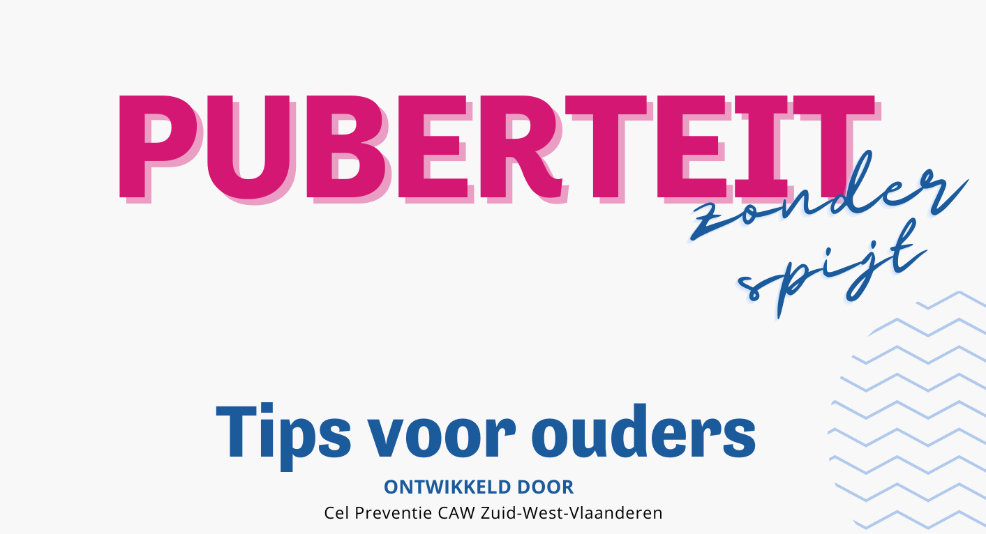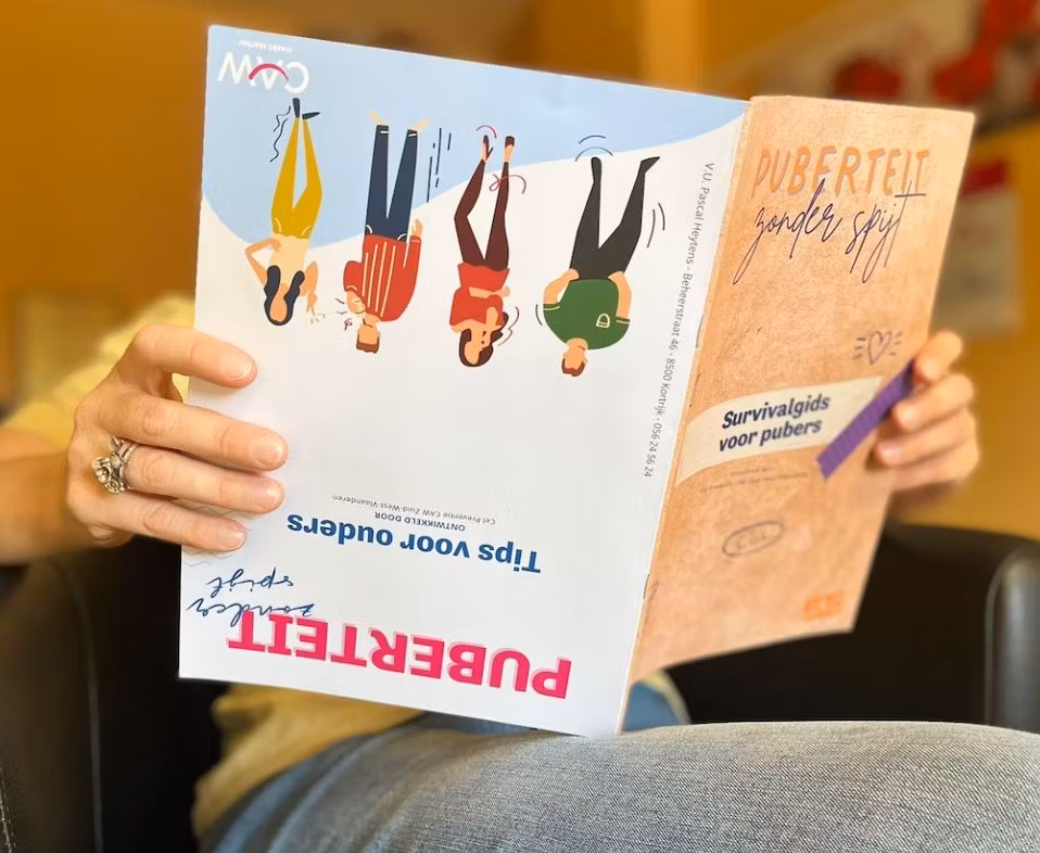 CAW Zuid-West-Vlaanderen ontwikkelde een brochure met tips en tricks voor ouders én pubers om elkaar beter te begrijpen en toenadering te zoeken. Er werd gekozen voor één brochure, bestaande uit een deel voor jullie als ouders en een deel voor je puber(s), waarin alle info samen gebundeld staat. Als ouder krijg je inzicht in het unieke puberbrein, terwijl de pubers te weten komen waarom hun ouders ‘zo’ doen. Daarnaast kunnen jullie ook eens elkaars deel doorbladeren en op die manier ontdekken hoe jullie naar elkaar kijken, wat de wederzijdse ergernissen zijn en hoe jullie daar op een positievere manier mee kunnen omgaan.