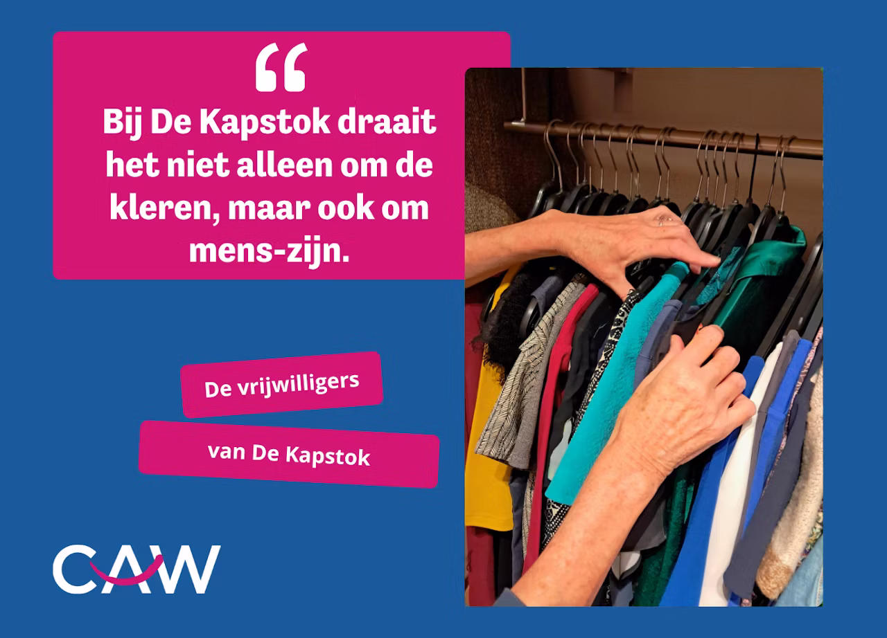Zo geeft Monique met veel plezier stijladvies: “Ik herinner me een verlegen meneer met een Kapstokbon, die me aarzelend vroeg of hij de blauwe of de bruine trui zou kiezen. De blauwe past het mooist bij uw ogen, zei ik hem. Zijn verlegenheid verdween meteen en we hadden een fijne babbel. Bij De Kapstok draait het niet alleen om de kleren, maar ook om mens-zijn.”